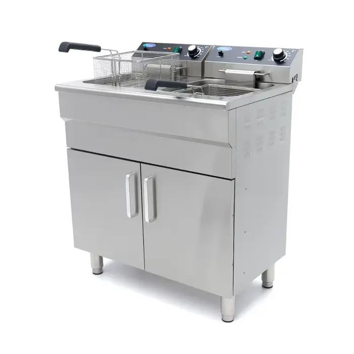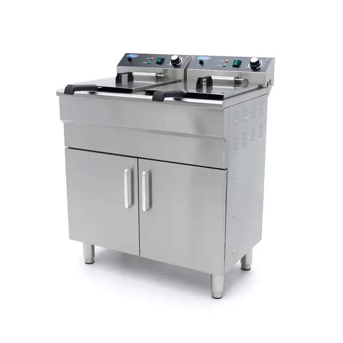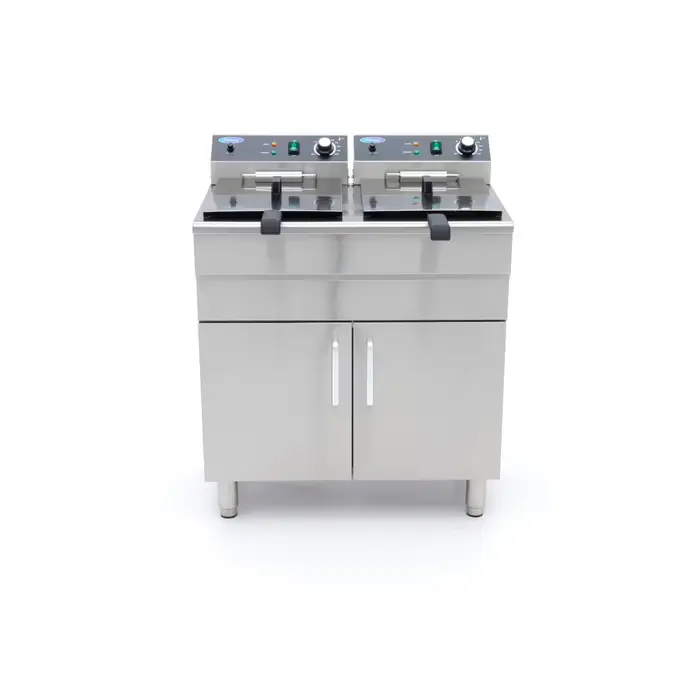 Manufacturer: Maxima Stainless steel body. 2 tanks, each capacity 16 liters. High precision thermostat (50°C – 200°C) Weight: 31 kg Dimensions: W73 x D53 x H91cm Power: 380V/50Hz/1Phase 2 x 5kw